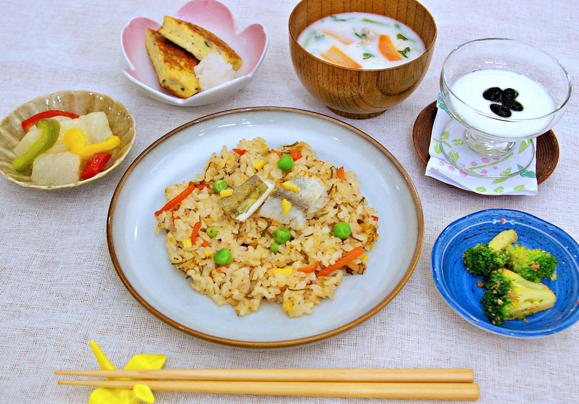 ☆氷下魚と昆布の混ぜご飯 ☆汁物 ☆ぎせい豆腐のおろしぽん酢