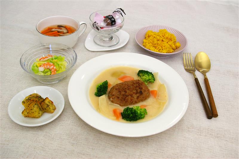 ☆ ホワイトシチューハンバーグ ☆ じゃが芋の青のりソテー ☆ キャベツサラダ